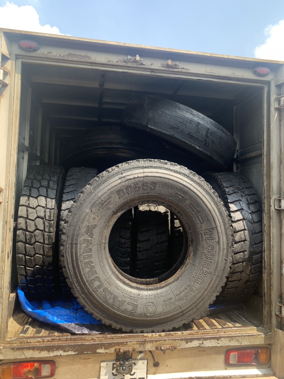 Lốp dán bố kẽm 11.00R20 gai ngang chạy công trình chuyên dụng cho xe tải, xe ben, container...